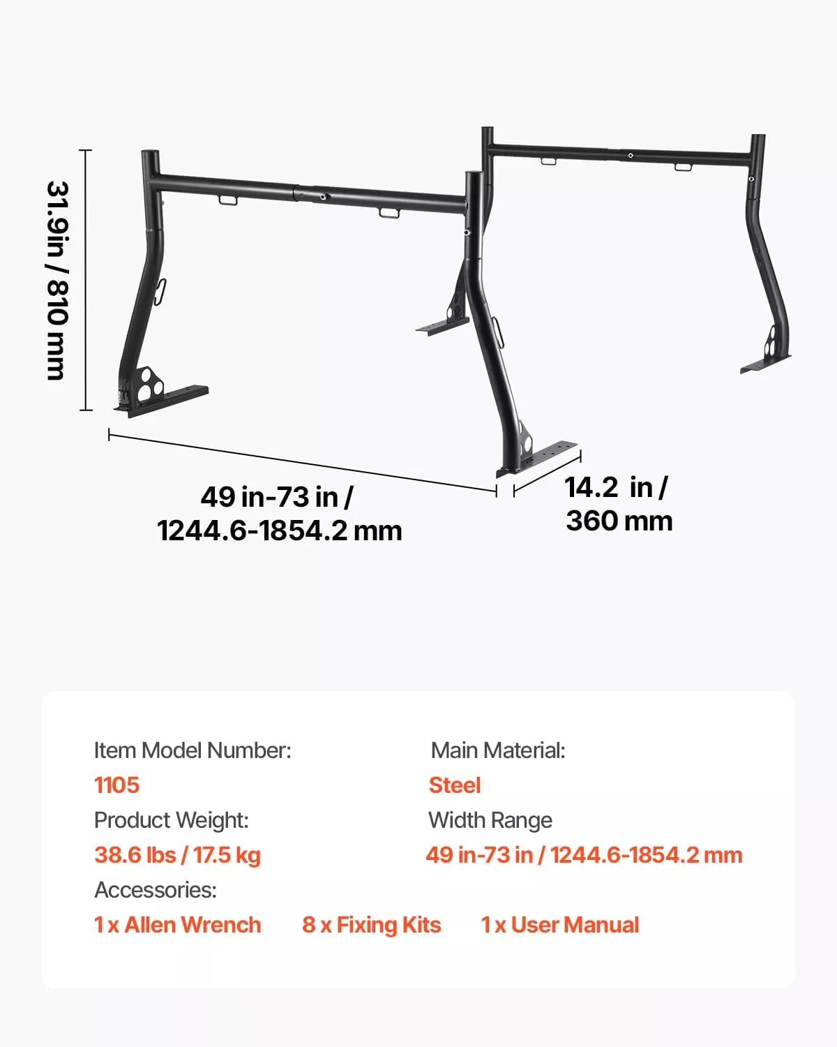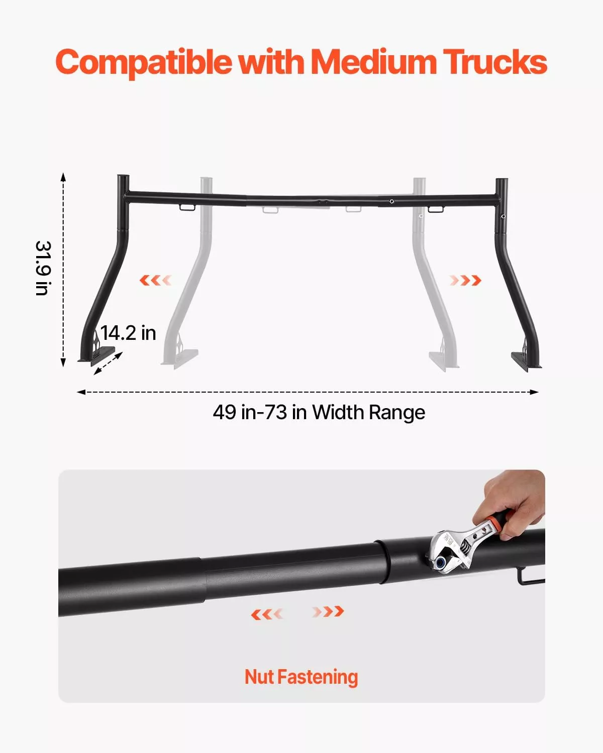 • Universal Fit: Expands from 49 to 73 inches to suit a wide variety of pickup trucks.