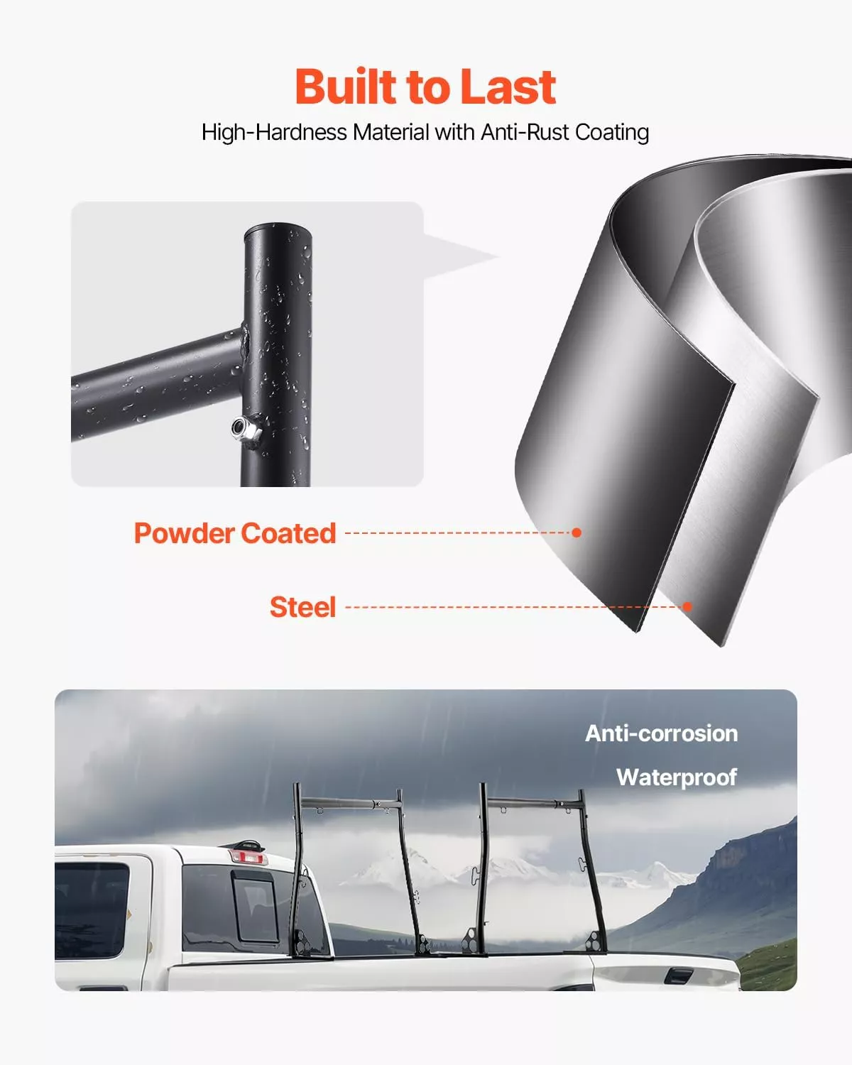 Engineered for performance, this rack fits most pickup trucks with bed widths between 49 and 73 inches. The adjustable design means no need for side rails, allowing you to adapt it perfectly to your vehicle. Built from high-quality steel and finished with a rust-resistant coating, it stands up to harsh weather conditions—from blazing sun to pouring rain or snowstorms. With a maximum static load capacity of 800 lbs, it’s ready for any challenge.