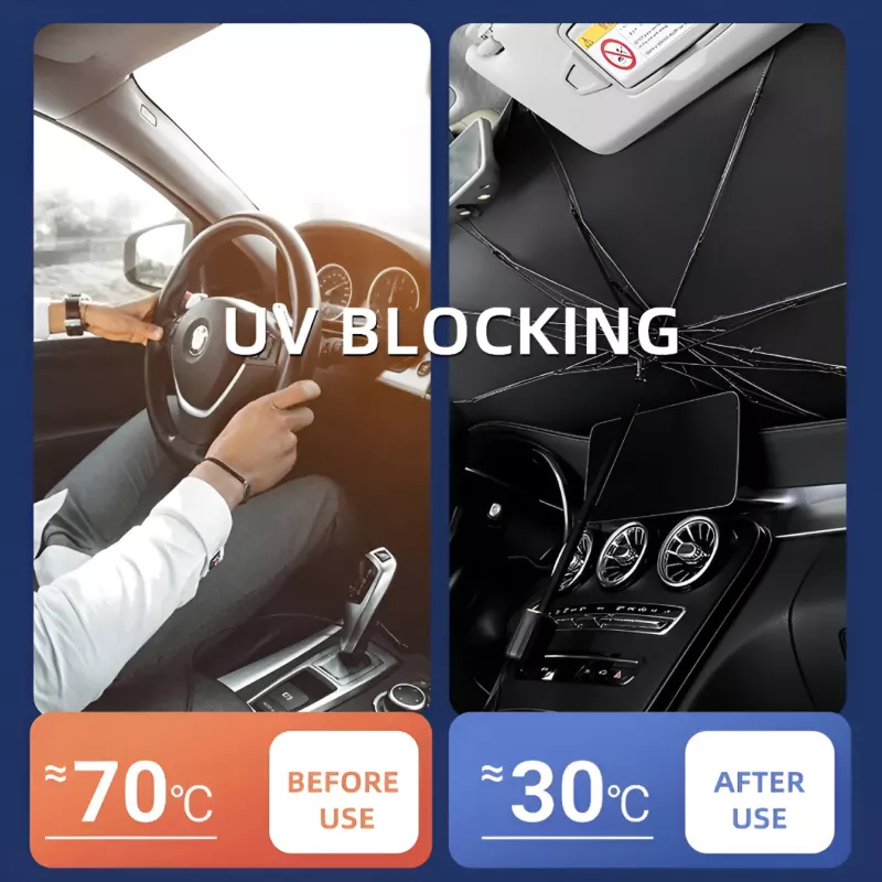 • Effective Heat Protection: The sun umbrella blocks out harmful UV rays and heat, keeping the interior of your car cooler even during the hottest days. This helps to reduce the temperature inside your car, making it more comfortable when you return.