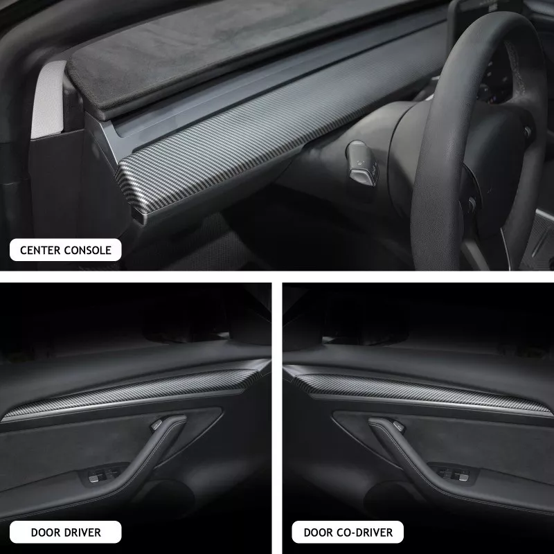 Transform the interior of your Tesla Model 3 or Model Y with this high-quality Carbon Fiber ABS Dashboard and Center Console Cover. Designed to fit 2021-2023 Model 3 and Model Y, this sleek accessory not only enhances the aesthetic appeal of your car but also adds a layer of protection against scratches, dirt, and wear. Made from durable ABS material with a stylish carbon fiber finish, this trim set provides a modern, sophisticated look that complements the high-tech interior of your Tesla.