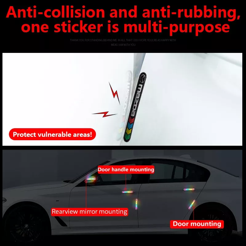 Give your Mazda 3, Mazda CX5, or Mazda RX8 the protection it deserves with these reflective anti-collision strips. They offer an easy and stylish way to prevent damage to your vehicle’s exterior while enhancing its overall look. Order yours today and enjoy the peace of mind that comes with knowing your Mazda is safe from minor accidents and scratches!