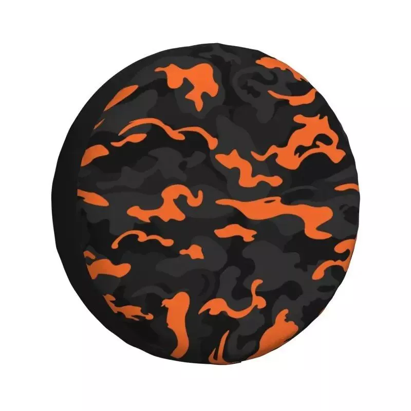 Rugged Camo Spare Tire Cover – Black Orange Camouflage Wheel Protector for Off-Road and Outdoor Vehicles