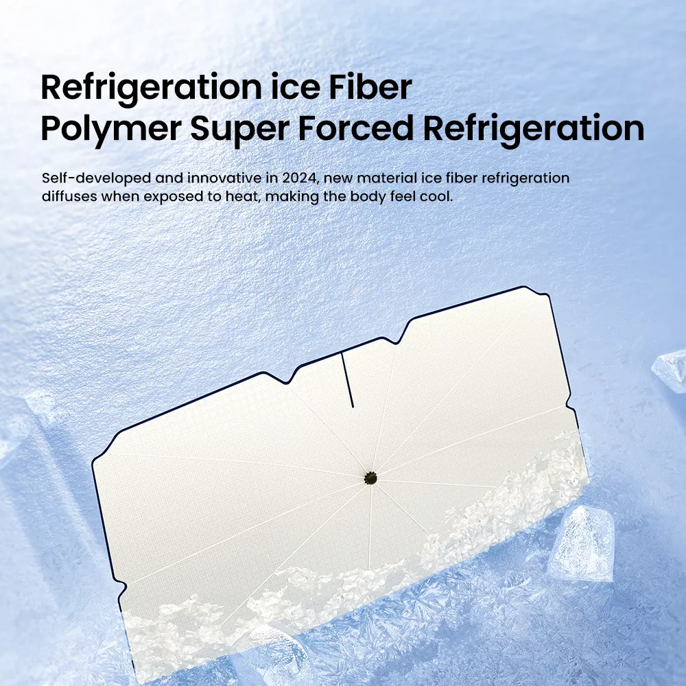- Refrigeration Ice Fiber Material: When exposed to heat, the umbrella rapidly absorbs and spreads coolness, offering you an air-conditioned car feel right from the moment you park.
