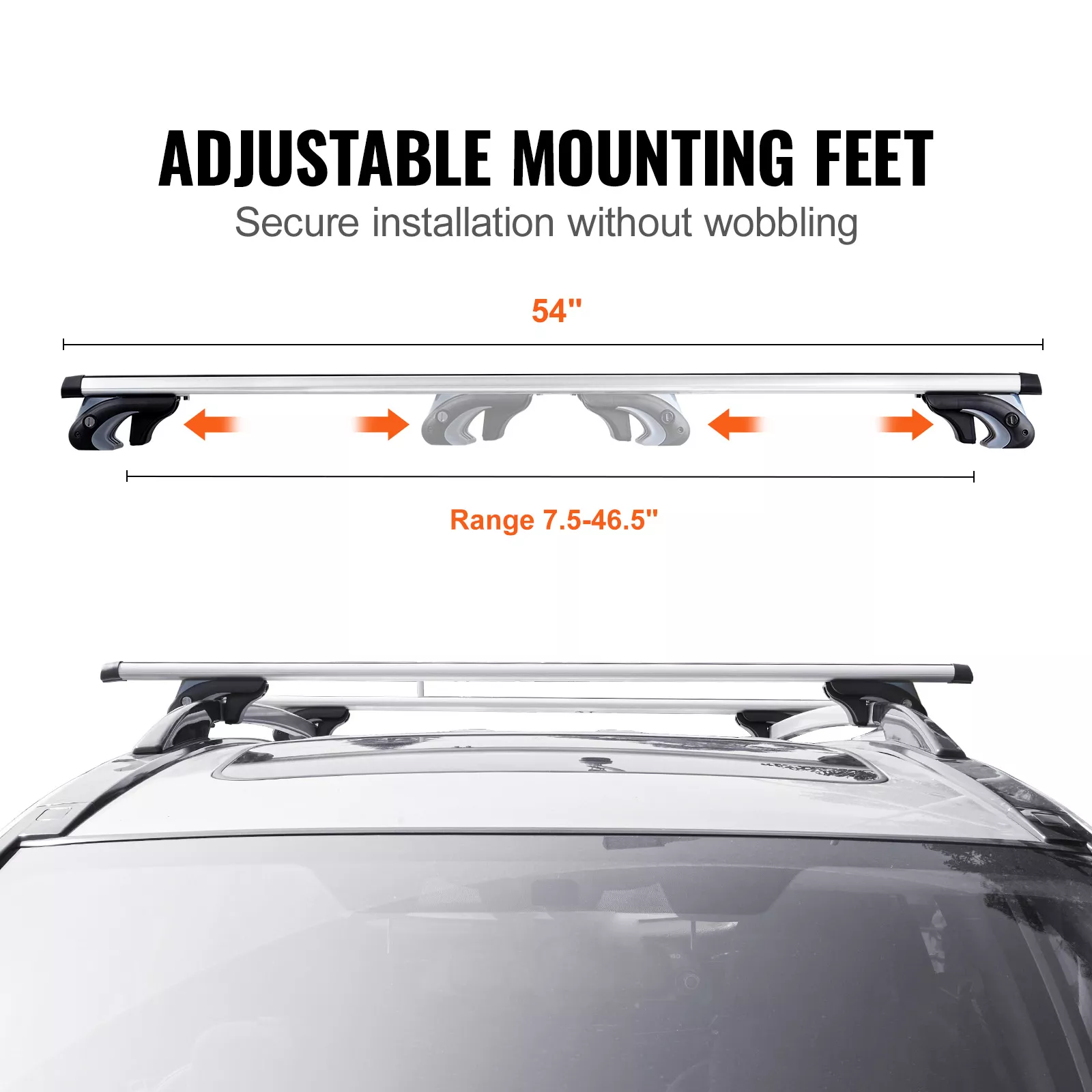 Say goodbye to complicated setups. These roof crossbars feature adjustable mounting feet that fit car roofs up to 54 inches wide — no drilling or modifications required. The package includes everything you need for a quick, 10-minute installation, allowing you to spend more time on the road and less time in the garage.
