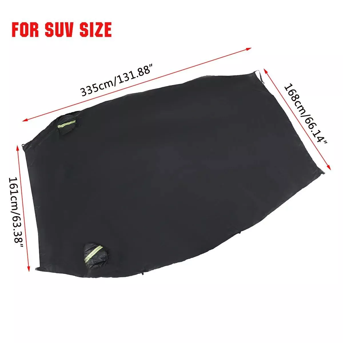 What sets our product apart is the attention to detail. The two reflective strips are strategically placed to prevent collisions by enhancing visibility at night. Coupled with the four tie rope hooks, the cover stays in place even in windy conditions. Not to mention, its black and silver color options offer both elegance and practicality, repelling sunlight and camouflaging dust.