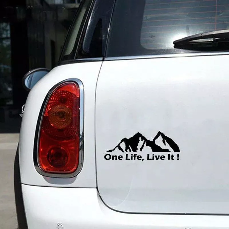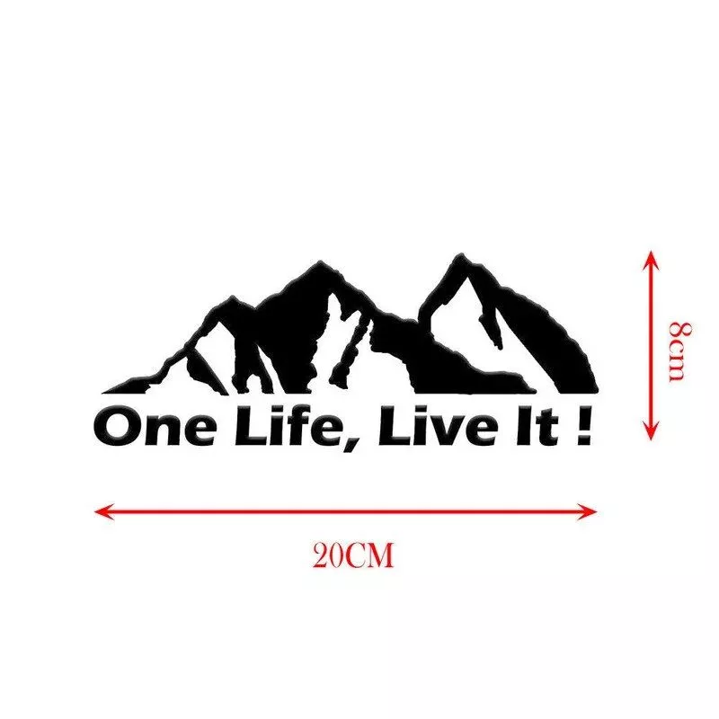 Our car sticker isn’t just any ordinary decal; it’s a lifestyle emblem. The ‘One Life Live It’ mantra paired with the rugged mountain silhouette captures the spirit of adventure. The sticker is hollowed out without a background, meaning it integrates seamlessly with any surface. Plus, the ease of application and residue-free removal makes it a convenient choice for anyone looking to update their gear or vehicle with personal flair.